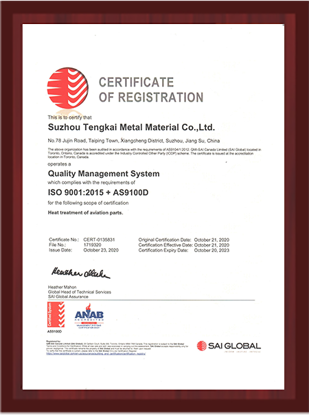 16 Years Of Experience In Heat Treatment Technology And Passed Nadcap Quality Audit