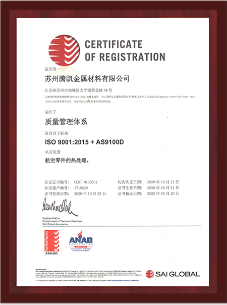 16 Years Of Experience In Heat Treatment Technology And Passed Nadcap Quality Audit