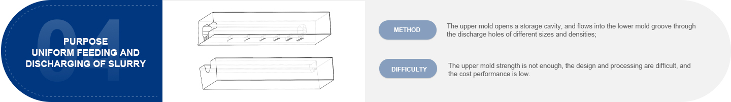the upper mold opens a storage cavity, and flows into the lower mold groove through the discharge holes of different sizes and densities;